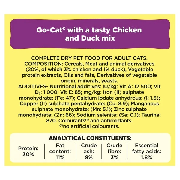 Go-Cat with Chicken and Duck provides 100% complete and balanced nutrition, enriched with high quality proteins, fatty acids, vitamins and minerals that supports your cat’s health, vitality and happiness