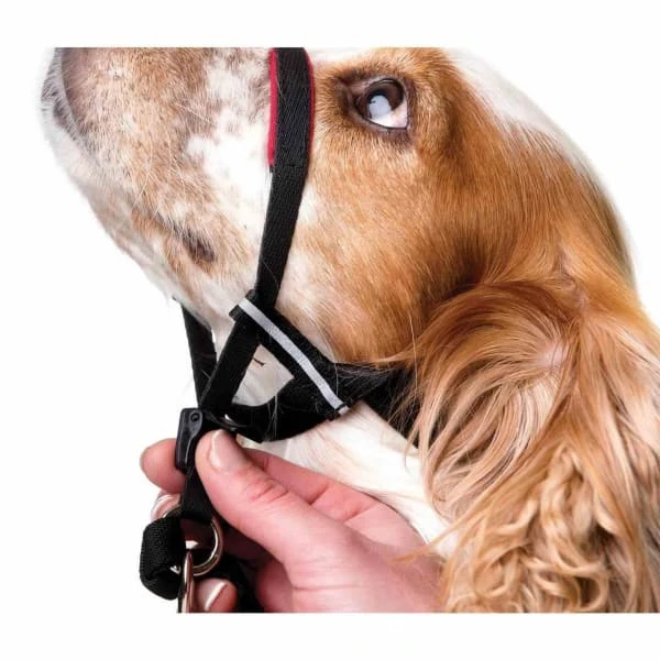 The uniquely styled cheek straps which follow the contoursof a dogs face, stop the HALTI OptiFit rising into the dogs eyes or slidingdown to his lips (flews). Additionalpadding on the noseband, ensures extra comfort and reflective webbing on theside strips help provide additional visibility.