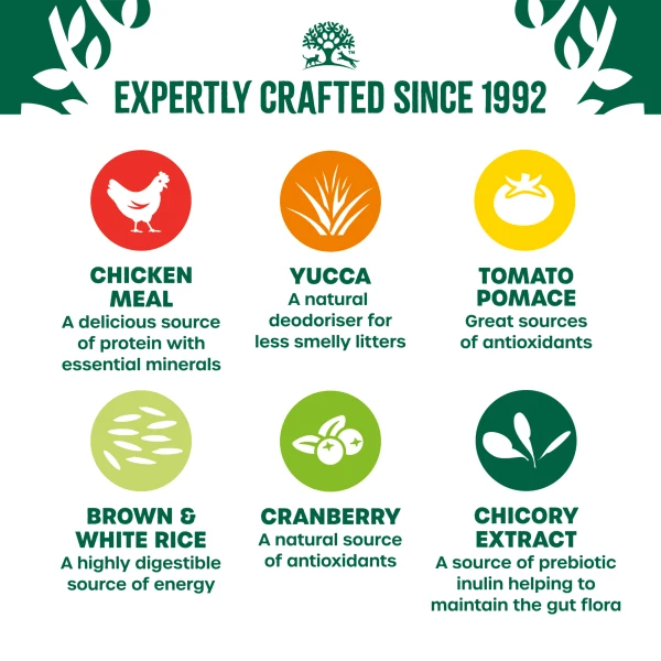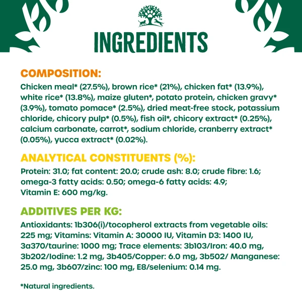 Selected Natural Ingredients* No added artificial flavours, colours or antioxidantsDry Cat Food with a Single Source Animal Protein