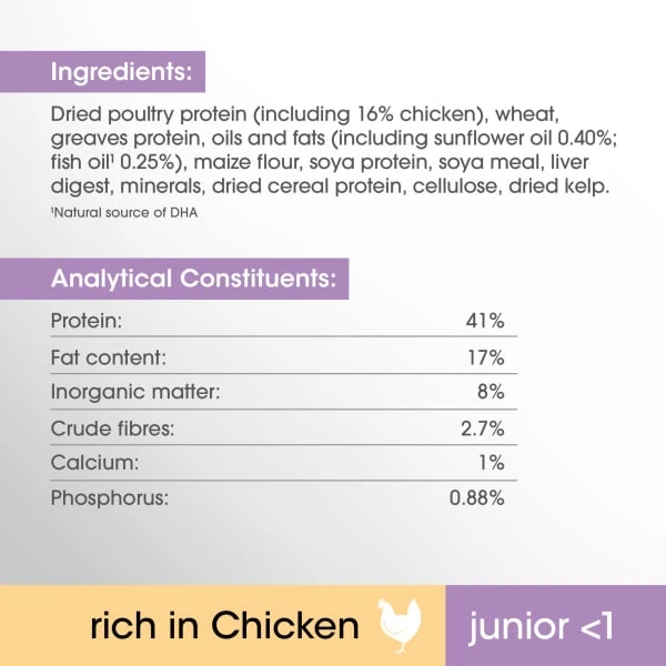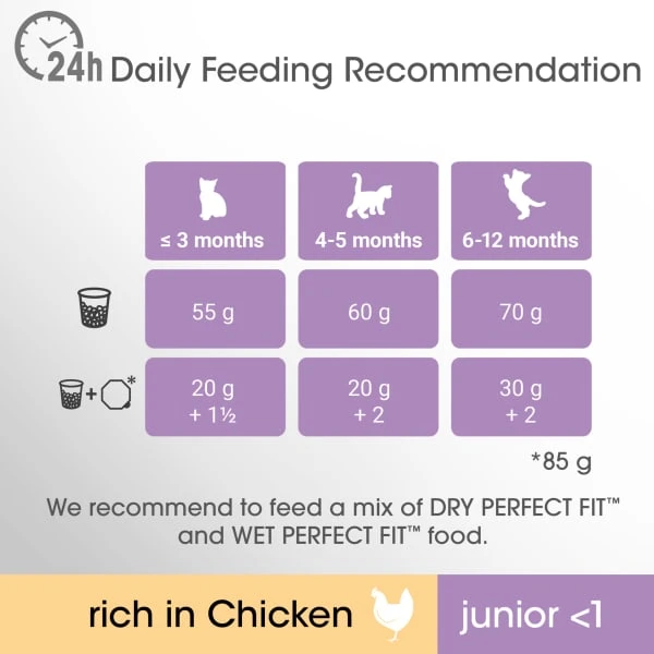 Perfect Fit™ Junior <1 Chicken cat food is specially formulated to support the specific needs of kittens:
