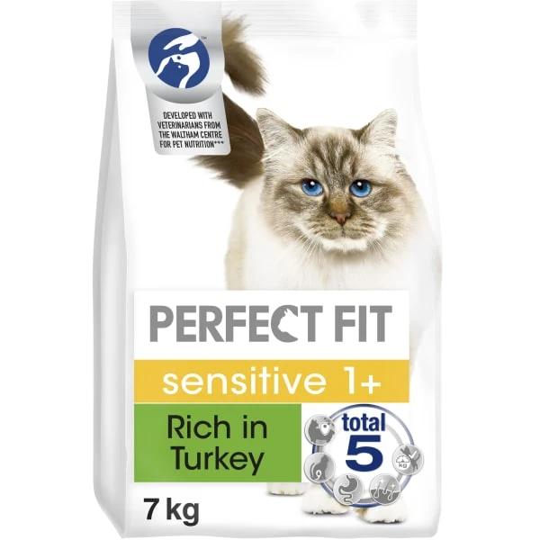 All of our Perfect Fit™ cat dry food recipes have been developed with our nutritionists and veterinarians of the Waltham Centre for Pet Nutrition to guarantee 100% complete, balanced and advanced nutrition. You can feel confident feeding your cat Perfect Fit cat biscuits. This adult dry cat food is an advanced nutrition cat biscuit made with high quality protiens and flavours your cat will love. A complete and balanced cat food that is tailored to your cat’s needs. Each Perfect Fit™ dry Cat food recipe contains a unique formula to address 5 of the most common health needs of cats; a premium cat food for your feline friend’s needs at every stage of their lives. Meet your cat’s needs by feeding them Perfect Fit adult cat food. The dry turkey cat food recipe is formed into dry cat kibbles with a delicious turkey flavour, to help your cat retain their youthful spirit day after day. Your cat will be craving for more! Perfect Fit Turkey cat food has been developed with Vets from the Waltham Centre for Pet Nutrition and contains no artificial colourants. Choose Perfect Fit cat food biscuits; tasty with a crunch.