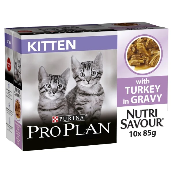 PURINA PRO PLAN NutriSavour Junior is a complete andbalanced wet cat food that combines the exceptional nutrition you want with avariety of protein-rich tender chunks and delicious gravy that your cat willlove.