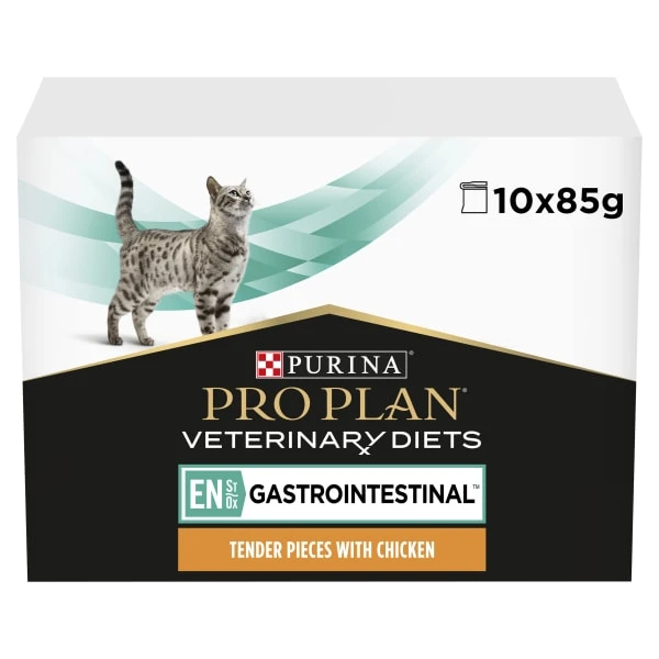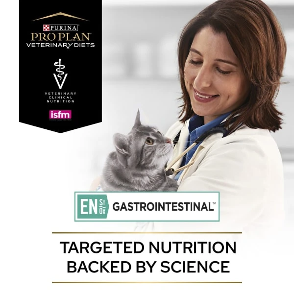 Purina Pro Plan Veterinary Diets Feline EN St/Ox Gastrointestinal is a highly palatable complete veterinary diet to help manage gastrointestinal conditions in cats of all ages, including kittens. Intestinal disorders are frequently associated with poor digestion, which may worsen symptoms, so PPVD EN contains selected highly digestible ingredients to help reduce the workload on the compromised gut and to minimise the amount of nutrients that are not absorbed and remain in the gut. It also contains a limited number of protein sources to help minimise any food reactions. PPVD Feline EN contains prebiotics and omega-3 fatty acids to help promote a healthy intestinal environment, of all ages