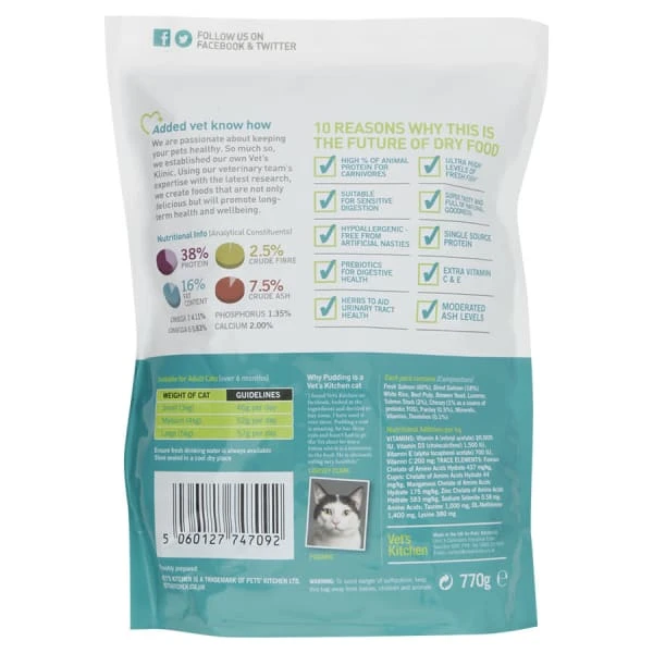 Feed any time as a treat or reward as part of a calorie-controlled diet. Approx. 1.7 Kcals per heart 3 x Hearts = 5 pieces of Vet’s Kitchen adult dry food Suitable from kitten through to senior. Always ensure fresh drinking water is available. Store sealed in a cool, dry place. Use within 4 weeks of opening.