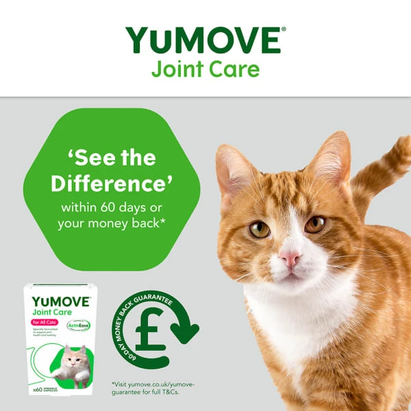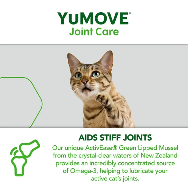 YuMOVE Cat is a clinically proven triple-action joint supplement for cats that aids stiff joints, helps mobility and supports joint structure. Recommended for cats that are getting older or beginning to show joint stiffness.